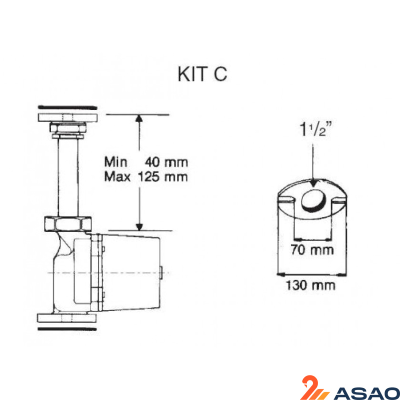 Минимальный размер удлинителя (включая резьбовые соединения) – 40 мм, максимальный – 125 мм, варьируется укорачиванием латунной трубки, входящей в комплект.