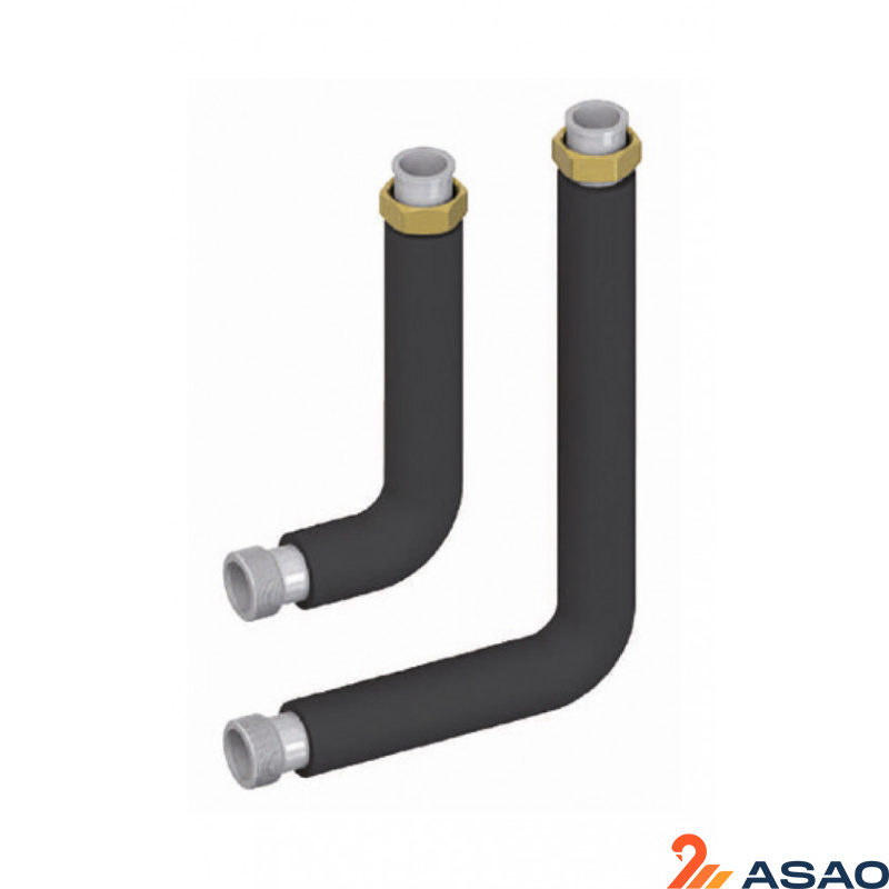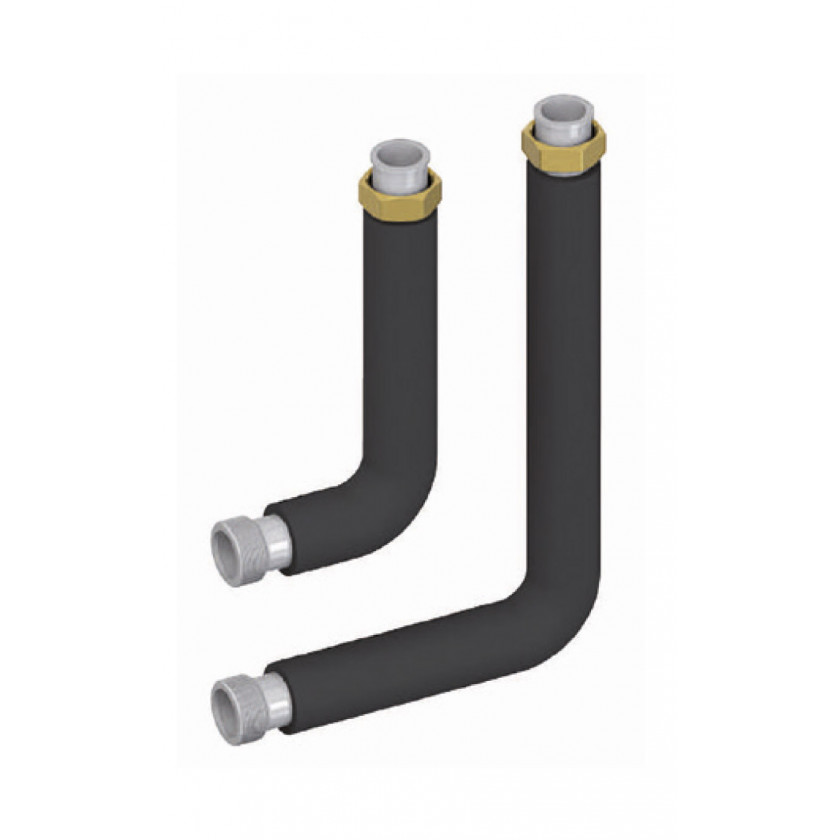 Дополнительный монтажный комплект предназначен для присоединения гидрострелки DN20, находящейся в вертикальном положении, к патрубкам распределительных коллекторов к DN20 до 55 кВт. Комплект состоит из двух гофрированных труб в ЕРР-теплоизоляции, имеющих резьбу НР1” и накидные гайки НГ1” для подключения.