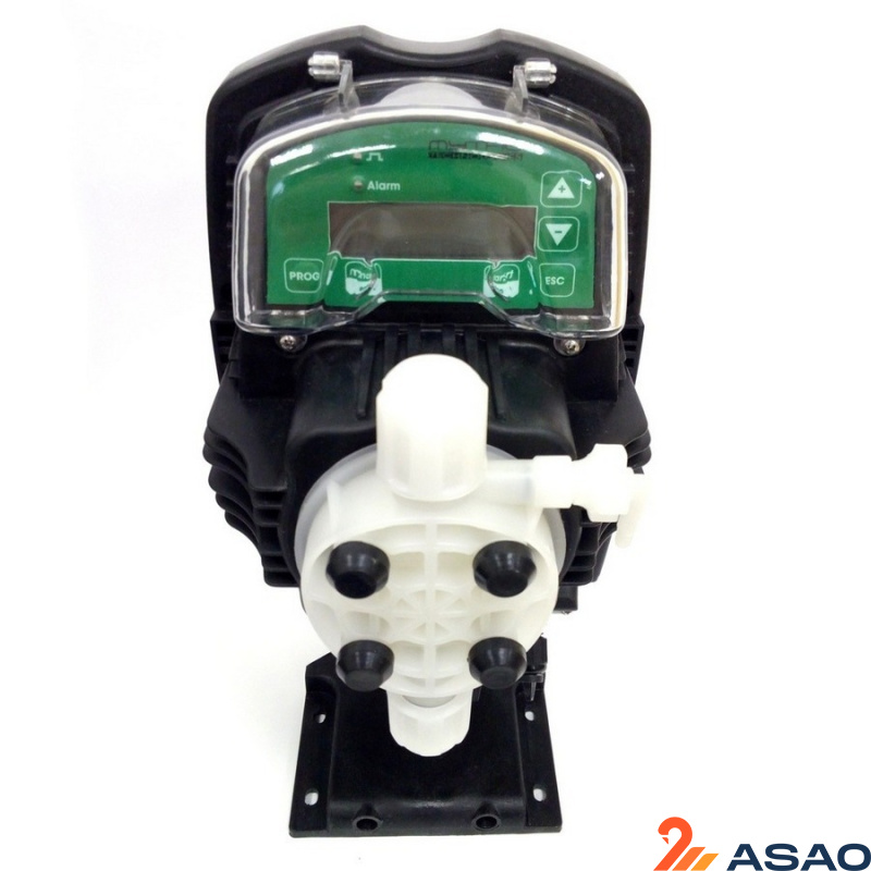 Электромагнитный цифровой мембранный насос Mytho HG с ручной регулировкой скорости дозирования и возможностью внешнего управления пропорционально аналоговым (0/4-20 мА или 20-4/0 мА) или цифровым (от импульсного расходомера — 1:N или N:1) сигналами.