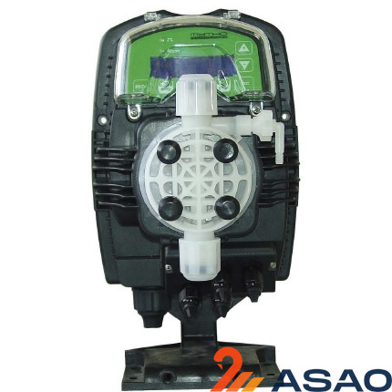 Электромагнитный цифровой мембранный насос Mytho HG с ручной регулировкой скорости дозирования и возможностью внешнего управления пропорционально аналоговым (0/4-20 мА или 20-4/0 мА) или цифровым (от импульсного расходомера — 1:N или N:1) сигналами.