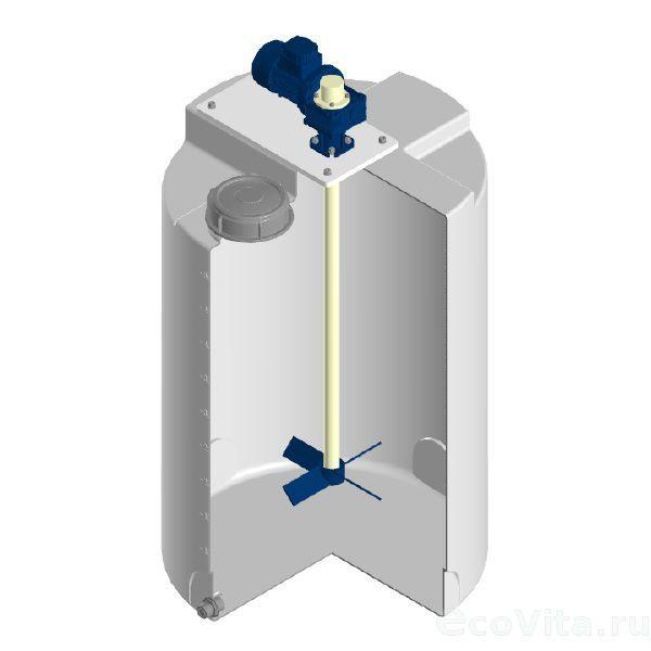 Мешалка лопастная тихоходная Asterion серии Микс L для емкости Анион ДК500. Конструкция миксера включает в себя четырехлопастной пропеллер, вал, привод, жесткое крепление мешалки к валу привода. Используется для перемешивания растворов кислот и щелочей и устанавливаются на емкость.