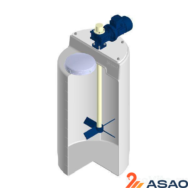 Мешалка турбинная тихоходная Asterion серии Микс L для емкостей Экопром 200 л. Конструкция миксера включает в себя рабочее колесо турбинного типа, вал, привод, жесткое крепление мешалки к валу привода. Используется для перемешивания растворов кислот и щелочей и устанавливаются на емкость.