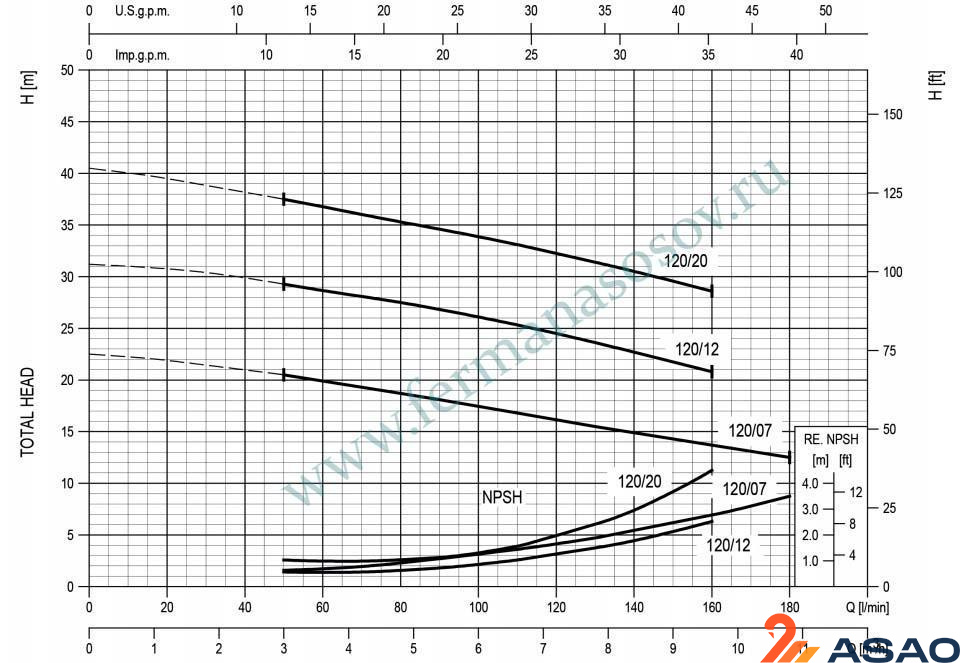 Напор максимальный, м