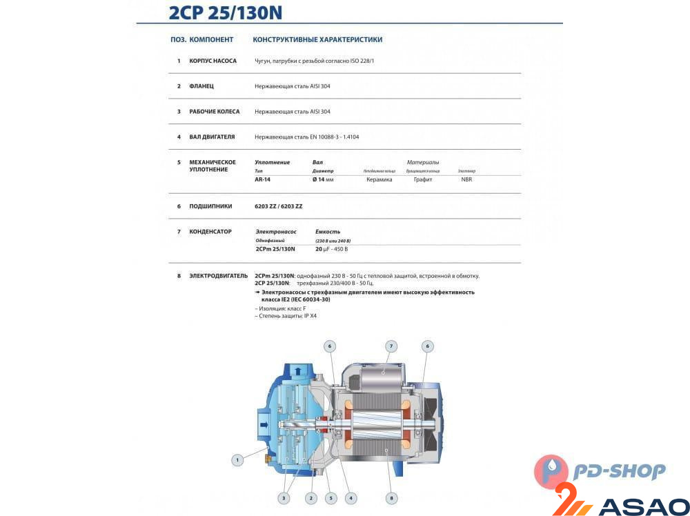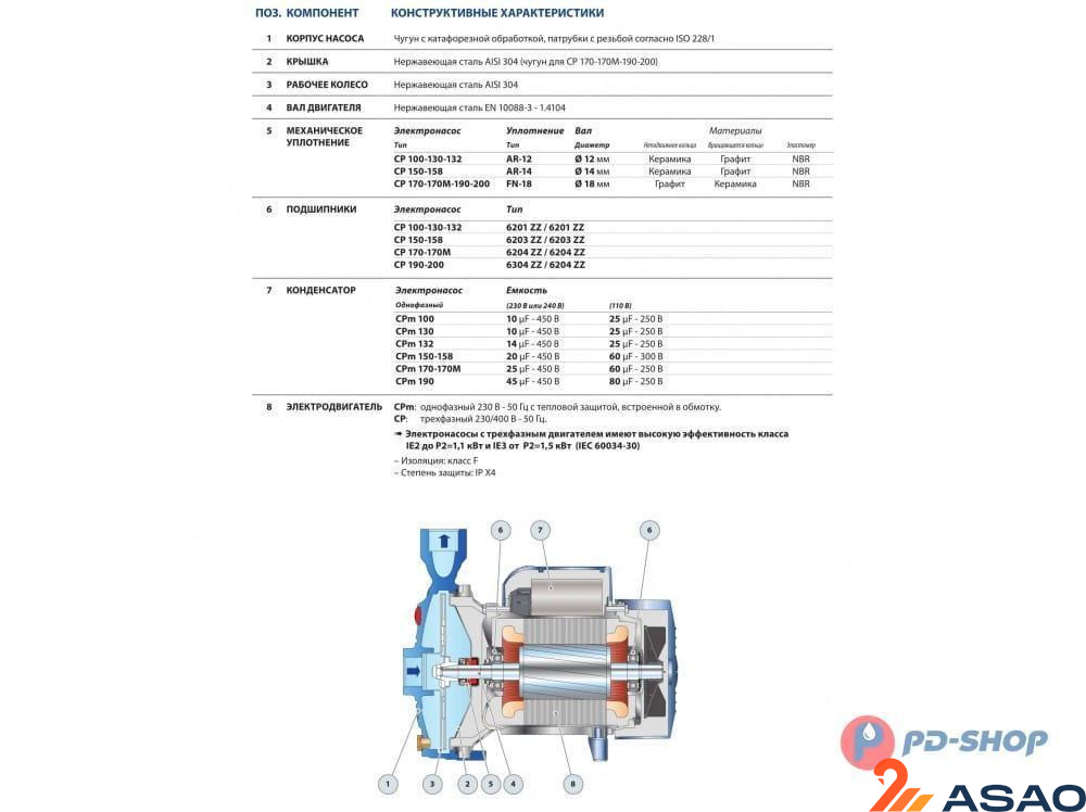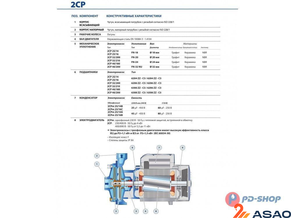 КОНСТРУКЦИЯ ЦЕНТРОБЕЖНЫХ НАСОСОВ PEDROLLO СЕРИИ 2CP