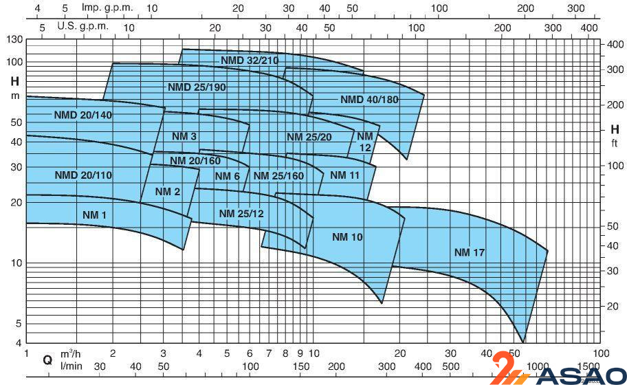- Максимально допустимое конечное давление в корпусе насоса: 16 бар (для NMD 25/190; NMD 32/210; NMD 40/180)