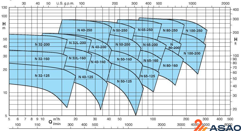 - Максимально допустимое конечное давление в корпусе насоса: 16 бар (для N,N4 40/160,200; N,N4 50/125,160; N,N4 65/125,160,200,250; N,N4 80/160)