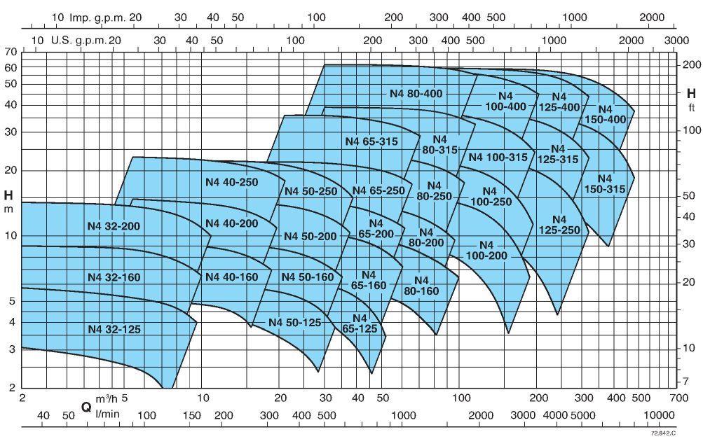 - Максимально допустимое конечное давление в корпусе насоса: 16 бар (для N,N4 40/160,200; N,N4 50/125,160; N,N4 65/125,160,200,250; N,N4 80/160)