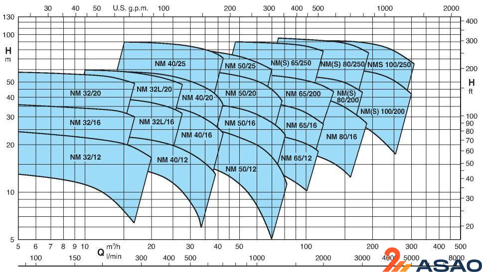 - Максимально допустимое конечное давление в корпусе насоса: 16 бар (для NMS 25/190; NMS 32/210; NMS 40/180)